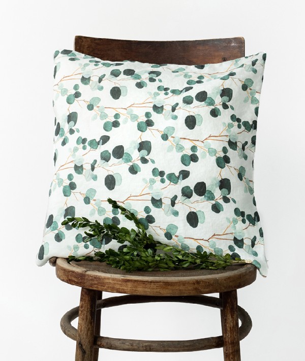 EUCALYPTUS ON WHITE CUSHION COVERS
