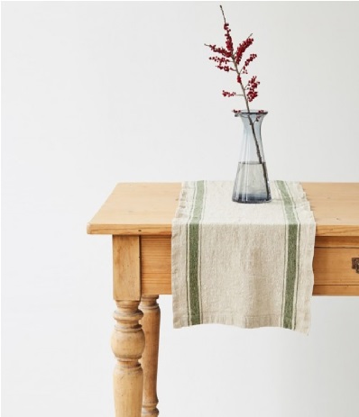 [OUT OF STOCK] GREEN STRIPE VINTAGE STRIPE WASHED LINEN TABLE RUNNER