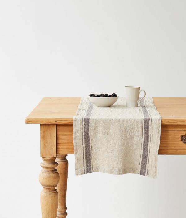 DARK GREY VINTAGE STRIPE WASHED LINEN TABLE RUNNER