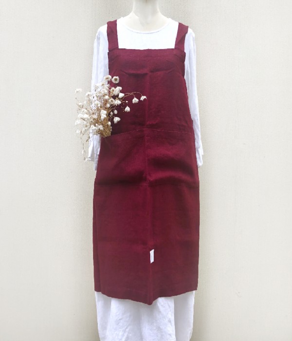 [OUT OF STOCK] [ BURGUNDY ] CROSSBACK LINEN APRON