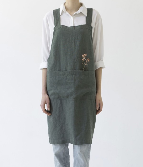 [ MOSS GREEN ] CROSSBACK LINEN APRON