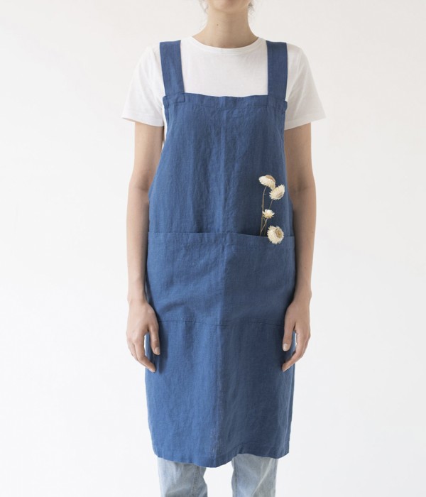 [ BLUE ] CROSSBACK LINEN APRON