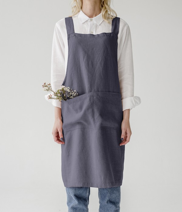 [ DARK GREY ] CROSSBACK LINEN APRON