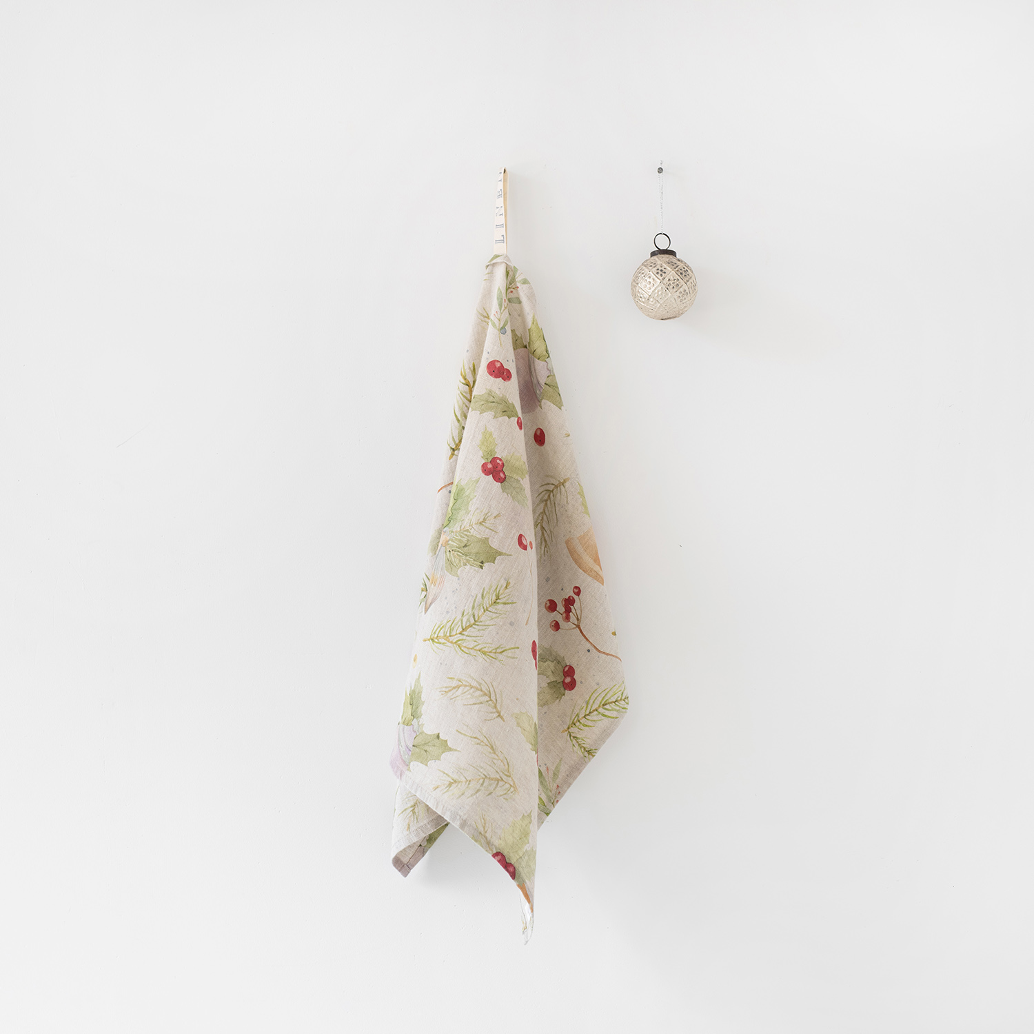 [ Christmas print on Natural ] Linen Kitchen Towel