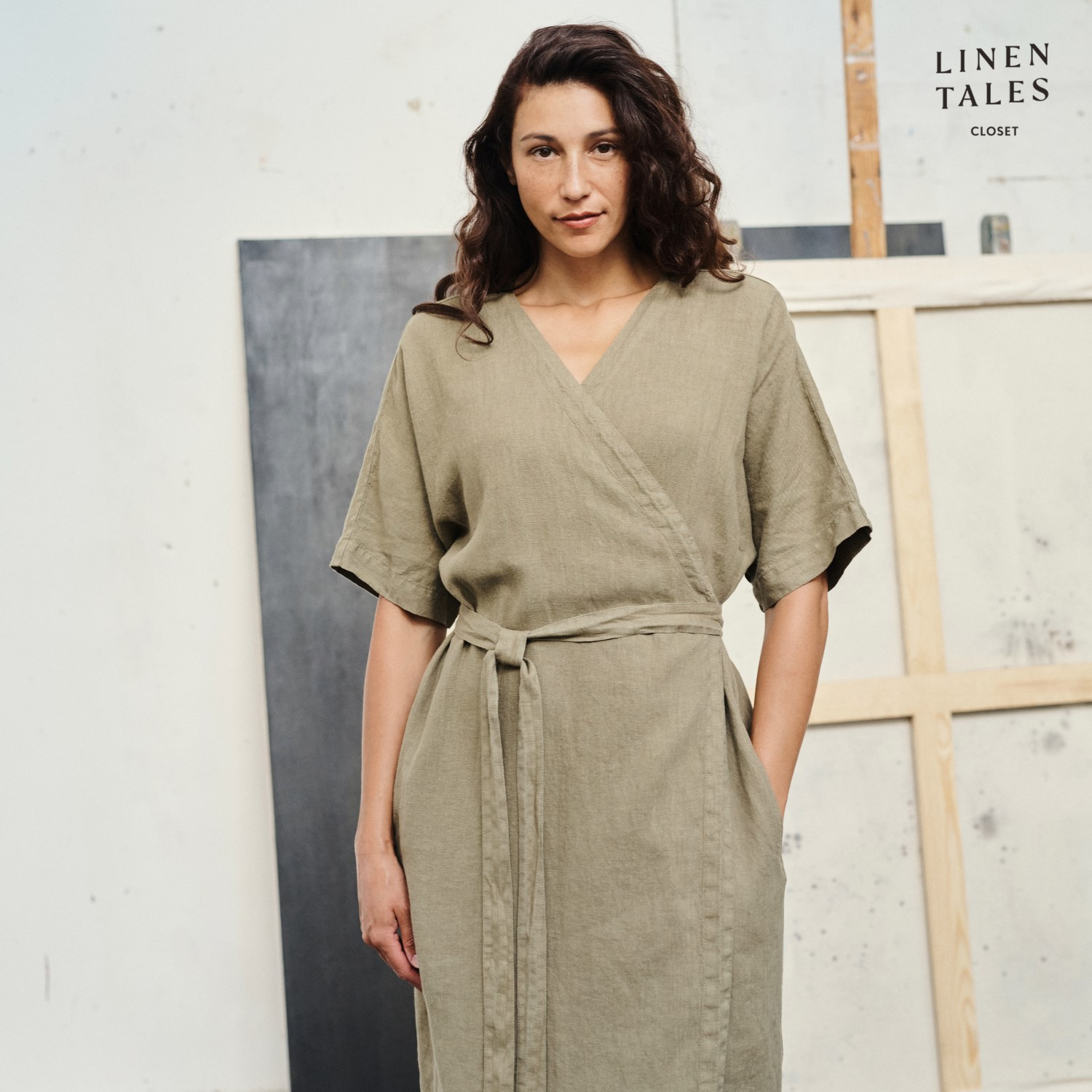 - V-neck wrap dress- Tied fastening